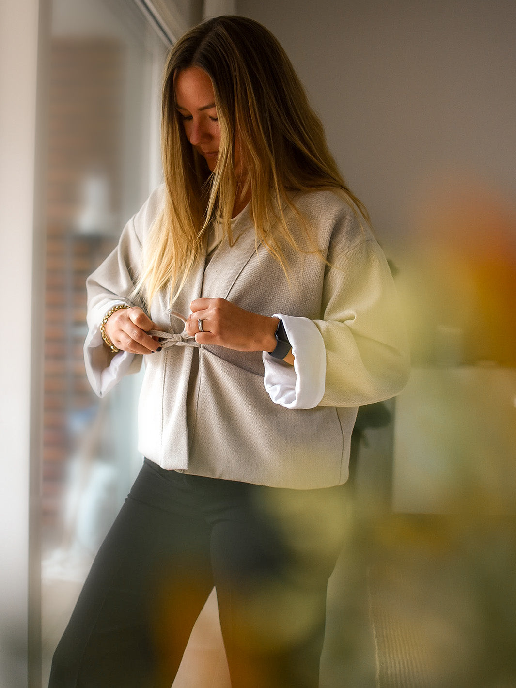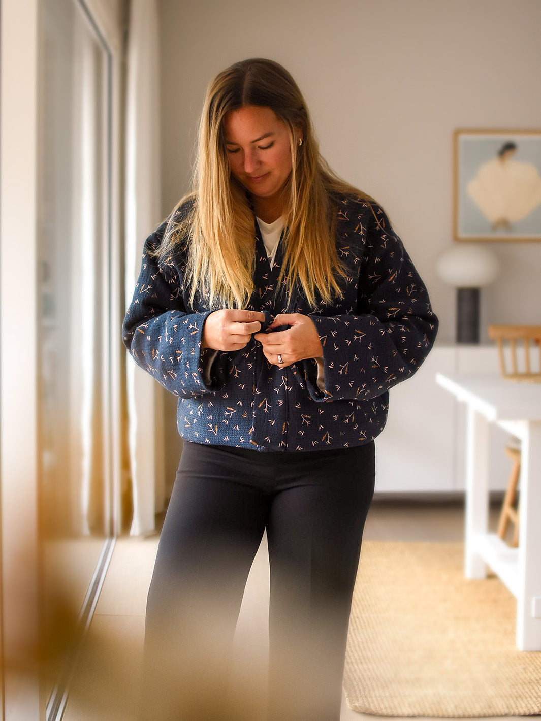 - Yttertyg, vävt tyg med lite eller ingen stretch. Mycket lätt till medium-kraftig vikt (upp till 340 gr/m2). Förslag: bomull, poplin, linne, quiltat tyg, teddy, bäckebölja, muslin, viskos, denim, chambray, bouclé, ull, tweed, jacquard. Obs! Många tyger krymper efter tvätt! Förtvätta samtliga tyger innan du klipper ut. Det går också bra att sy i trikåtyg, men överväg att gå ner en storlek.